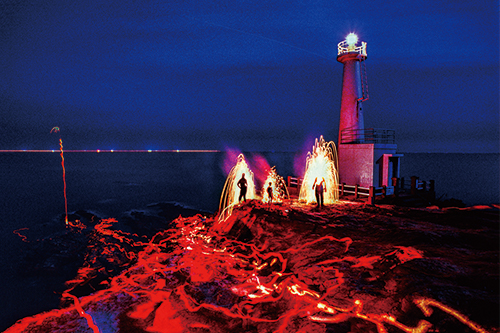 この火祭りを撮影した作品はとても多く寄せられました。燃えさかる炎と火花、人物を取り入れ、画面構成だけではなく、色と階調の再現がうまいです。臨場感に溢れる描写で作品に引き込まれます。